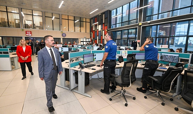 Vali İlhami Aktaş, toplantı öncesi 112 Acil Çağrı Merkezi’ni gezerek incelemelerde bulundu,