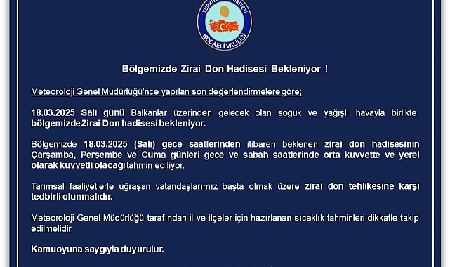 Bölgemizde 18.03.2025 (Salı) gece saatlerinden itibaren beklenen zirai don hadisesinin