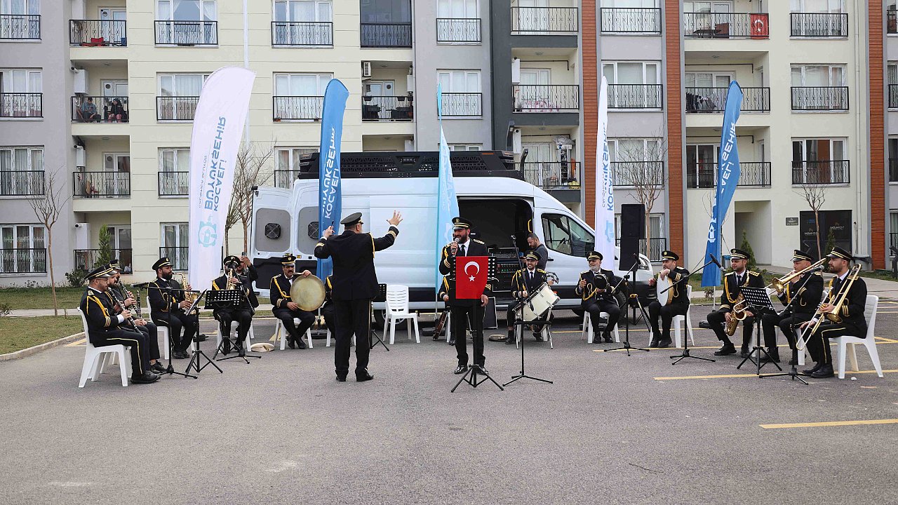 Büyükşehir Belediyesi Bando Takımı, Ramazan’a özel repertuvarıyla Kartepe’de sağlık personeli için hayata geçirilen Sağlıkkent Sitesi sakinlerine huzur dolu bir konser sundu. İftara sayılı dakikalar kala, Ramazan’a özgü ezgiler ve ilahiler, vatandaşları manevi bir atmosferle buluşturdu. RAMAZAN AYINA ÖZEL KONSERKocaeli Büyükşehir Belediyesi, Ramazan ayının bereketini ve huzurunu vatandaşlarla paylaşmaya devam ediyor. Bu kapsamda Büyükşehir Bando Takımı, Ramazan’a özel hazırlanan repertuvarlarıyla Sağlıkkent Sitesi sakinlerine muazzam bir konser sundu. İftara kısa süre kala, huzur dolu ezgiler ve Ramazan’a özgü ilahiler, vatandaşları derin bir manevi atmosferle buluşturdu. Kimi vatandaş evinin balkonundan kimi ise bando takımının yanına giderek konseri takip etti. HUZURLU BİR AKŞAM YAŞADILARAkşam saatlerinde iftar hazırlıklarının sürdüğü Sağlıkkent Sitesi’nde, Bando Takımı’nın sunduğu konserle site sakinlerine unutulmaz bir deneyim yaşatıldı. Ramazan’a özgü şarkılar ve ilahiler eşliğinde gerçekleşen konser, her yaştan vatandaşın ilgisini çekti. Katılımcılar, hem ruhsal hem de zihinsel bir huzur içinde Ramazan’ın manevi havasını en güzel şekilde yaşadı. BANDO TAKIMINA BÜYÜK İLGİ VARDIKonserin başladığı andan itibaren Sağlıkkent sakinleri, bando takımına büyük ilgi gösterdi. Ramazan’ın coşkusunu ve manevi havasını hissederek, şarkılar ve ezgilerle keyifli dakikalar geçiren vatandaşlar, konserin ardından Kocaeli Büyükşehir Belediyesi’ne teşekkürlerini iletti. Sağlıkkent sakinleri, iftar saatine yaklaşılan o anlarda bando takımının sunduğu müzikle huzurlu bir atmosferde iftarlarını açmaya hazırlandı.