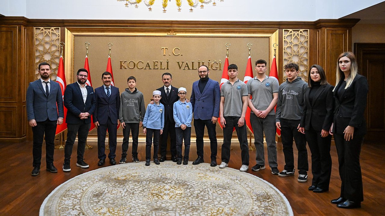 İzmit İbni Sina Anadolu İmam Hatip Lisesi Müdürü Zeki Koyun, okul yönetimi ve çeşitli yarışmalarda dereceye giren öğrencilerle birlikte, Vali İlhami Aktaş’ı ziyaret etti.